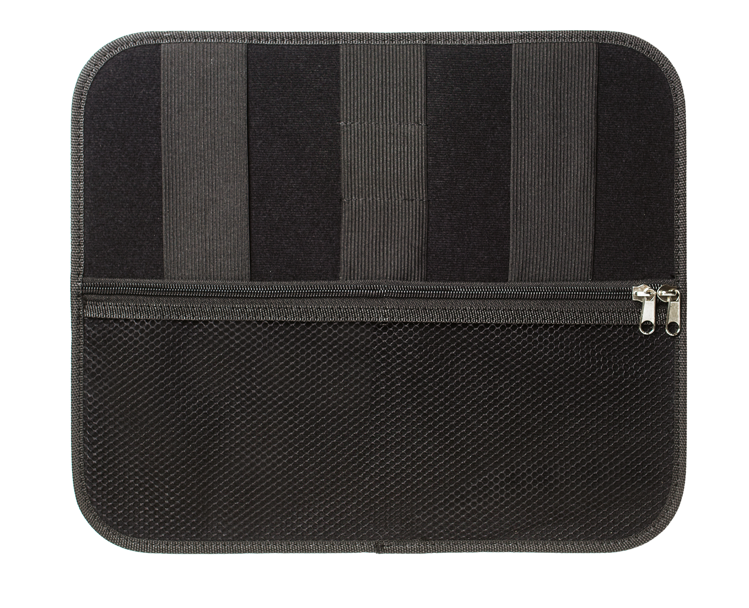 - Praktischer Mix aus elastischen Gummibändern und einem Netzfach mit Reißverschluss